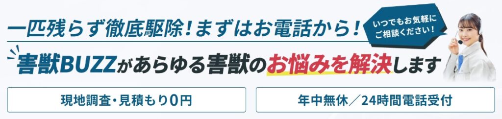 害獣BUZZでは、電話またはメールでの無料相談・無料調査の受付を行っています。