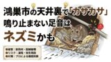 ネズミの場合は「カサカサ」「カリカリ」といった軽い音が中心で、侵入口も小さく被害範囲は比較的限定的です。